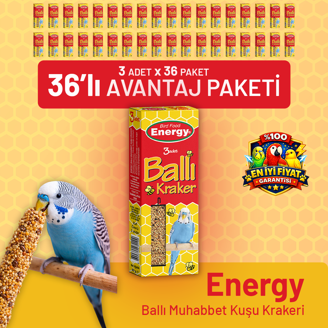 Ballı Muhabbet Kuşu Krakeri 3'lü - 36 Adet